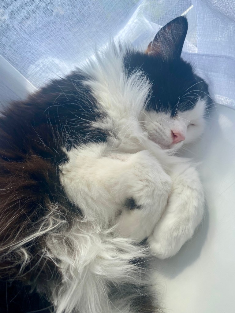 Freddie is my fluffiest cat, lord Fluffington, from the Notting Hill Floofs. He came to me when in 2018 i lost Mimi, the mad cat, she was larger than life, always getting herself into trouble, she was a light. I was heartbroken and then i took a look at Freddie and i knew it was meant to be. His name came to me because he reminded me of Freddie Mercury in his black and white spandex catsuit and that was it, Freddie it was, can you tell i am a massive Queen fan?